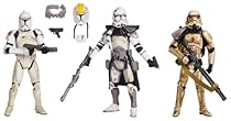 From Clone Trooper to Stormtrooper in no time flat! The progression of the galaxy's most feared and powerful army is captured in these figures। This surprising Evolutions pack includes 3 fabulous characters: Clone Trooper (Episode II), Clone Trooper (Episode III), and Sandtrooper (Episode IV)। Each extra-special Star Wars figure stands 3 3/4-inches tall, is amply articulated and excellently sculpted, comes with various additional parts, and features a superior range of motion। Troop these onto your shelf before someone beats you to it! The Clone Troopers fight for the Republic, to save the galaxy from chaos। But secret plans change their loyalties and they end up helping the wicked forces of the Sith take control! No longer known as Clone Troopers, they are now Stormtroopers-- the loyal soldiers of the Emperor, enforcing his harsh will throughout the